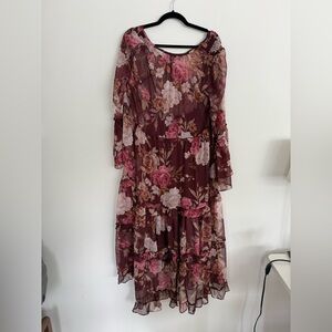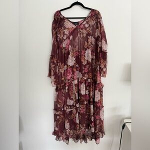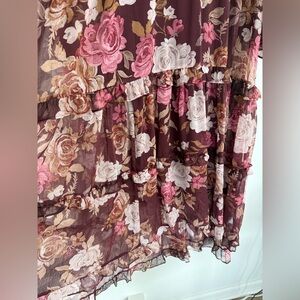 Brand new without tags and never worn. Purchased on Vici, size medium. Beautiful burgundy floral maxi dress. Pictures of actual item begin on photo 3!