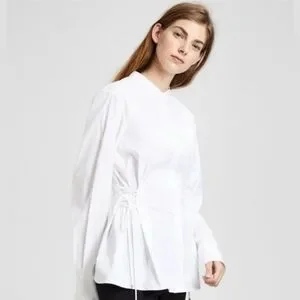 NWT THEORY WHITE LACED BUTTON DOWN, SIZE P