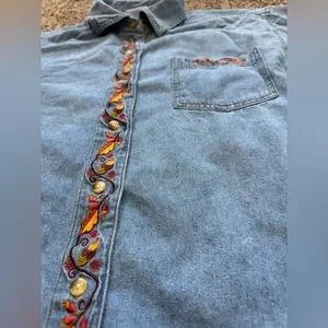 Vintage Fall leaves denim button up shirt