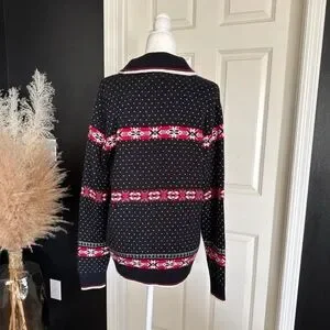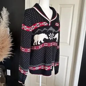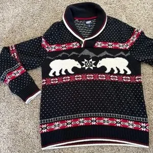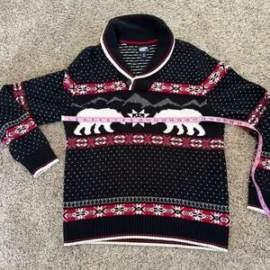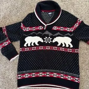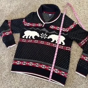 Lands' End Sweater Black Shawl Collar Fair Isle Polar Bear Wool Blend
