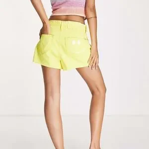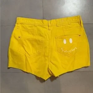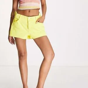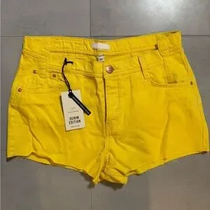 River Island Yellow Denim Jean Shorts Casual Cutoff Style NWT