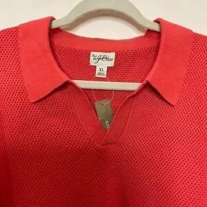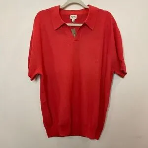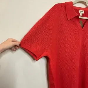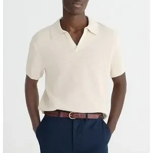 J. Crew Men's Red Short-sleeve cotton mesh-stitch johnny-collar sweater-polo NWT