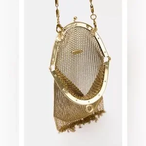 This elegant gold mesh evening bag is perfect for special occasions. Its shimmering gold design adds a touch of luxury to any outfit.
