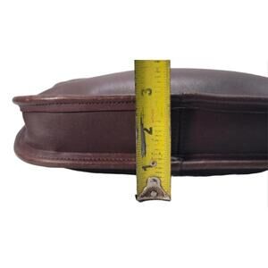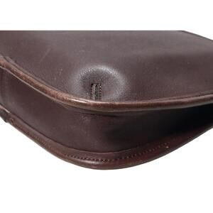 The Vtg Y2K Coach Ergo Mini 9020 in Mahogany Brown is a vintage shoulder bag with a unique crescent shape and gold hardware accents. Made from leather with a suede lining, this mini bag features a zip closure, inner pockets, and a bag charm. Perfect for various occasions including travel, parties, casual outings, formal events, workwear, and business meetings, this Coach bag exudes a 90s theme and is a stylish and functional accessory for any woman's wardrobe.