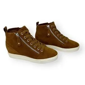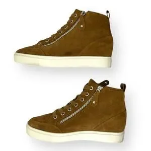 Steve Madden Women's Cornell Hidden Wedge High Top Sneaker Size 8.5 Cognac Suede