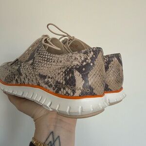 Cole Haan Snakeskin Embossed Leather Lace-Up Sneakers