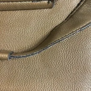 This Kenneth Cole Reaction laptop bag has plenty of interior room for your laptop, tablet and other necessary items for the traveling businessperson. There is a large zippered pocket on the front of the bag, a smaller slip pocket on the back of the bag, and zippers on each end of the bag to increase bag width as needed. There is a Velcro strap on the back wall of the bag that attaches to a padded divider so you can securely store your electronics or important papers. The front portion of the interior of the bag has plenty of room and there are 2 more small zippered pockets on the front wall of the bag. Plenty of storage for business cards, pens, and other business necessities. Some wear on handles and a couple of smudges, one on front near logo, and one on interior near pen holders, but otherwise good used condition. Comes from a smoke free home.