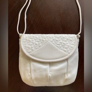 Vintage JOHN WEITZ White Leather Quilted Front Flap Shoulder Bag
