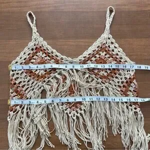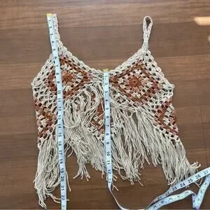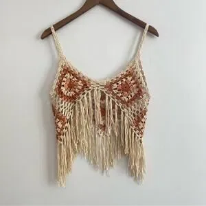 Vintage | Handmade Crocheted Sleeveless Tank Boho Tassels Festival Fringe Top S