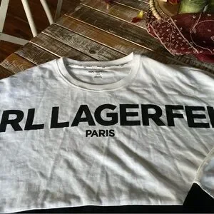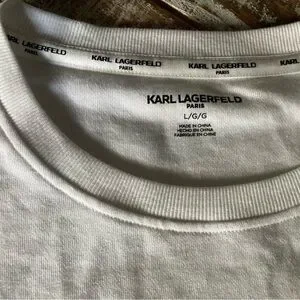 Classic white tee with Karl Lagerfeld Paris branding. Simple and elegant design. Brand new w/ tags!