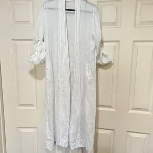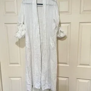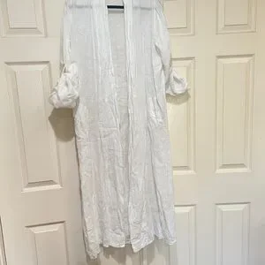 Made in Italy linen white Open Long Cardigan Pocket Lagenlook Beach relaxed SZ M