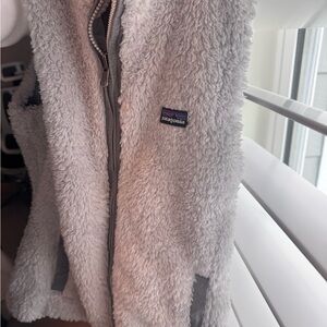 Cozy fleece vest. Soft texture. Full zip front. Perfect for layering.