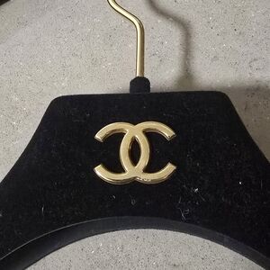 Buy some CHANEL without hangers? Set of 2 CHANEL hangers featuring velvet exterior, CC logo, and lower strap clips.