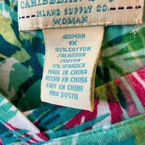 Caribbean Joe Green and Pink Leaf Print Long Sleeve Top Size 1X