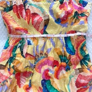 -Yellow with multicolored tropical floral print
