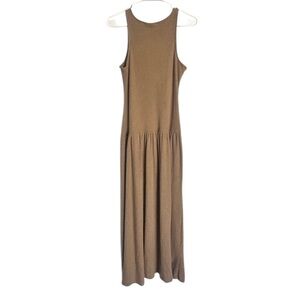 Elegant brown maxi dress with a sleeveless cut. Flowy and comfortable for any occasion.