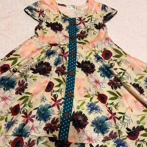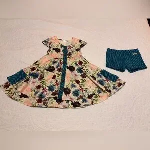 Charming floral dress featuring vibrant flowers and polka dot accents. Comes with matching shorts! Perfect for any occasion. Great quality, thick fabric.