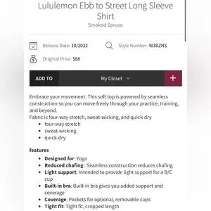 Lululemon Ebb To Street Ribbed Longsleeve Shit in Smoked Spruce Green Size 10