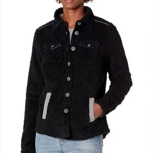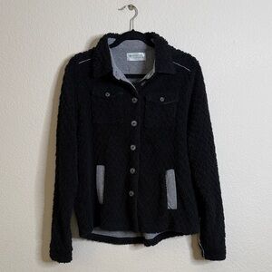 Aventura Cheyenne big shirt fleece jacket women’s large black grey EUC