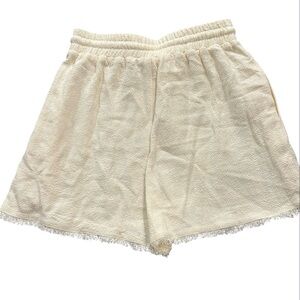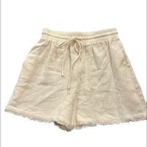Free the Roses Anthropologie Cream Ivory Shorts Small Drawstring Fringe Hem