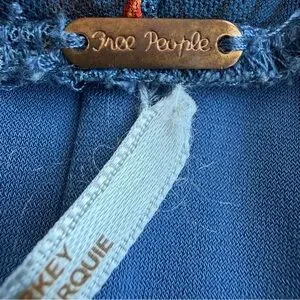 Free People Sz XS Romi Mesh Mini Skirt Blue Floral Fully Lined Elastic Waist