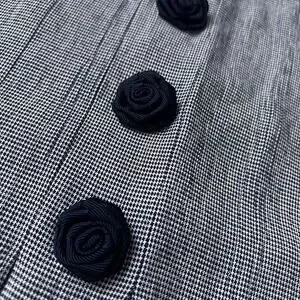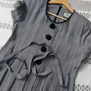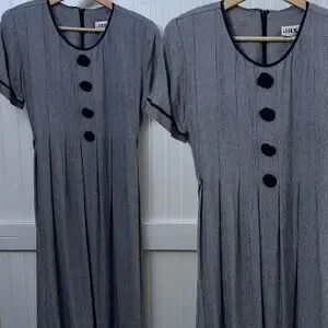 Vtg Midi Dress Classic Prairie Cottagecore Houndstooth Button Front Slip Women M