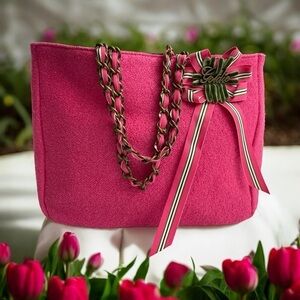 Vintage Limited Edition Pink Tweed Goldie Bag Purse Chain Pockets Barbiecore