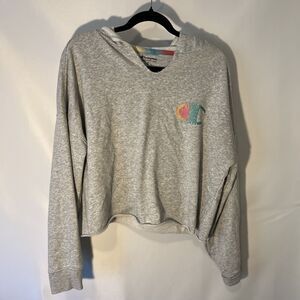 Champion Womens Cropped Gray Hoodie Sweatshirt Rainbow Size Medium