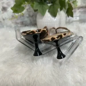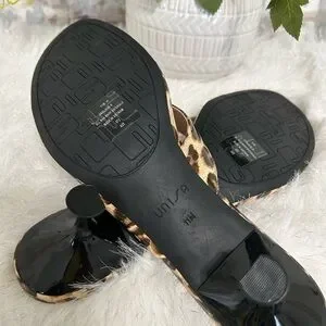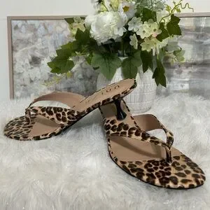 (61.) Stylish Unisa sandals with a striking leopard pattern. Perfect for a bold look. these are animal print kitten-heel thong sandals leopard print kitten heel. Approximately 2.5 inches. A minimalist thong strap with an open back and a slim kitten heel. (NWOT)