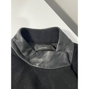 Club Monaco Italian Wool Leather Trim Collar Sleeve Coat Black M Medium