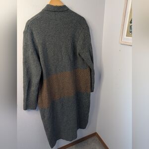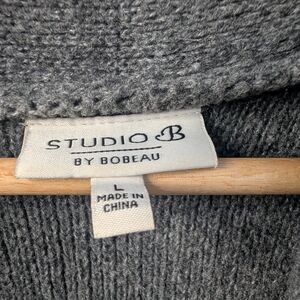 Studio B by Bobeau Long Open Front Cardigan Sweater Gray Brown Chevron – L