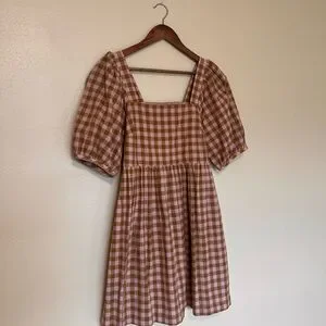 Stylish mini dress with a gingham pattern. Features a square neckline and puff sleeves. NWT. Size small true to size.