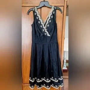 Elegant black midi dress with gold floral embroidery. Sleeveless design with a flattering V-neckline. Perfect for special occasions. Side zipper, like new, great price. Elegant dress, ready for a day wedding, coctail party, a dinner or a great occasion.
