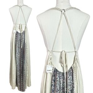 Free People Bohemian Nights Maxi Slip Dress Size Medium NWT Silky 70s Lace