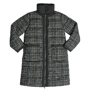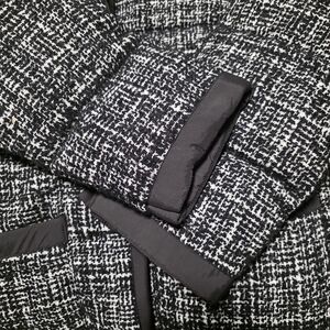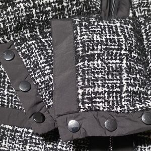 New! Elegant black and white tweed heavy puffer jacket/ coat with a detachable high collar. Perfect for a chic look.