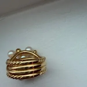 David Yurman Large Pearl Cluster Ring 18K Yellow Gold Diamonds Size 6.5