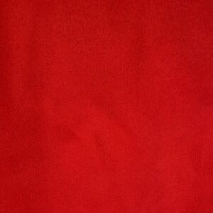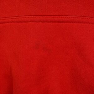 Color and pattern: Solid red fleece knit with tonal Comfrt embroidery at the left chest.