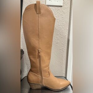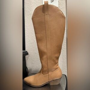 Chic tan boots with a sleek design. Perfect for elevating any outfit.
