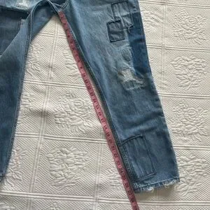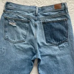Urban Outfitters BDG Dad Slim Taper Fit Jean Medium Wash Patchwork Denim 33