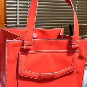 Stylish and vibrant, the BCBGeneration Coral Red Tote Bag with Lavender accents is perfect for any occasion. Its bold red color adds a pop of color to your outfit. Ideal for everyday use.