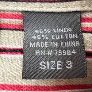 Additions by Chicos Women's Linen Blend Shirt Size 3 US XL Beige Red Stripe