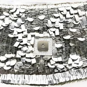 Good condition: few missing sequins, wear on sequins, minimal wear on leather trim, relaxed body shape.