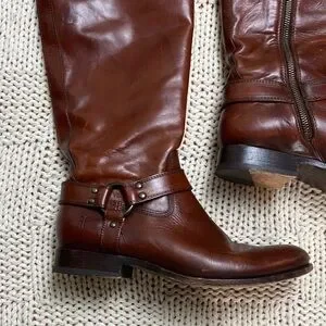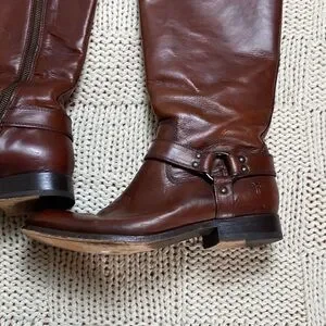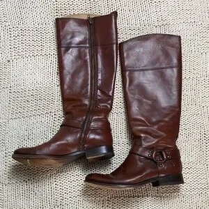 Frye Melissa Harness Extended Leather Calf Tall Riding Boots Brown Size 9.5B