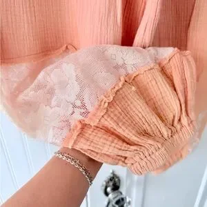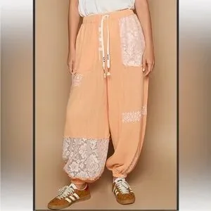 Chic coral pants with delicate lace trim. Comfortable fit. NEW