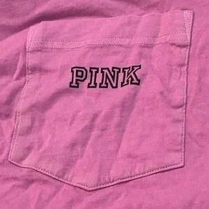 Bright fuchsia tee with pocket detail. Features PINK logo.