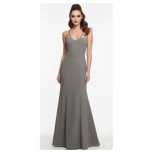 Vera Wang Lavender Trumpet Fitted Gown Quiet Luxury Academia Sz 14 Ash Gray
