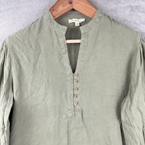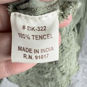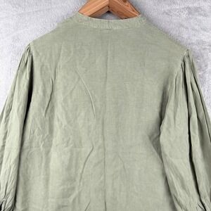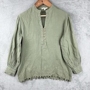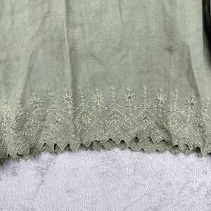 Solitaire Blouse Womens XL Button Front Top Embroidered Tencel Moss Green Boho