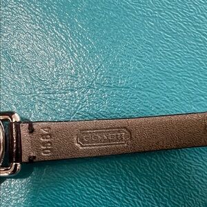 Vintage Coach Bridle Women’s Watch. Stainless steel round face with diamonds and black leather band. Gently worn in like new condition with a new battery. Case width-21.0mm, band width-6.0mm.