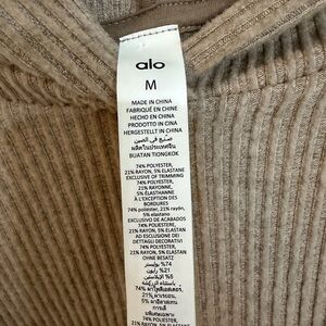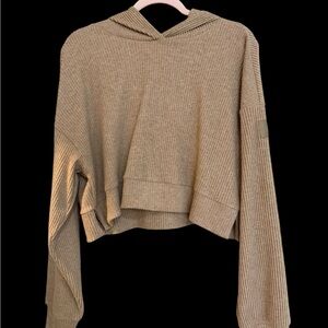 ALO Yoga Muse hoodie cropped ribbed-knit in gravel heather size M
