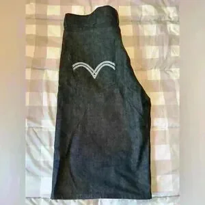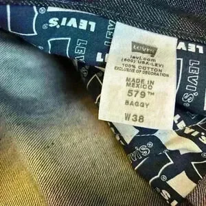 Levi’s vintage dark denim shorts. Baggy style with decorated back pockets. Size mens W38. 13.5” inseam. In good condition.